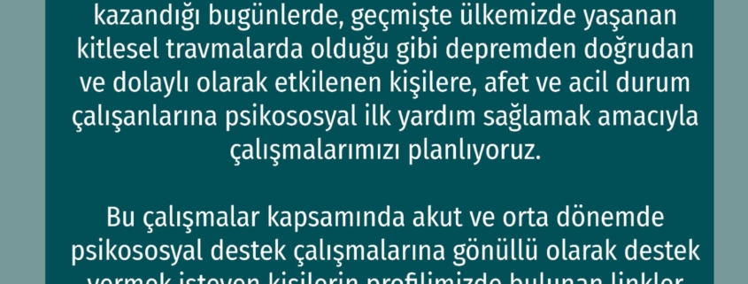 Psikososyal Destek Çalışmaları Gönüllü Çağrısı