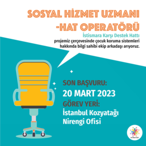 Nirengi Derneği, İstismara Karşı Destek Hattı programı kapsamında çocuk koruma sistemleri hakkında bilgi sahibi ekip arkadaşı arıyoruz.